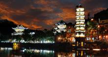 下午安排:乘車赴【芙蓉古鎮(zhèn)】(贈(zèng)送門票、景區(qū)環(huán)保車和酉水畫廊已含),山水如畫,多情的酉水養(yǎng)育了世世代代的土家兒女,也造就了沿岸動(dòng)人的風(fēng)光,酉水畫廊納含著芙蓉鎮(zhèn)的草木、山水、人兒,一道道美麗的彩虹是它編織的最美西蘭卡普。這里得酉水舟楫之便,上通川渝,下達(dá)洞庭,素有“楚蜀通津”之稱。因謝晉執(zhí)導(dǎo),劉曉慶、姜文主演的電影《芙蓉鎮(zhèn)》在此取景而出名,于是人們便把此地叫做芙蓉鎮(zhèn)。時(shí)代變遷,歷久彌新,更因其獨(dú)特的原始人文,靜謐山水成為新時(shí)代湖南旅游新寵。芙蓉古鎮(zhèn)大瀑布,酉水碼頭繁華依舊!乘車赴神秘湘西深處鳳凰古城,這里被譽(yù)為遠(yuǎn)去的家園,夢(mèng)中的故鄉(xiāng),邂逅邊城的燈火闌珊,品味獨(dú)特的夢(mèng)里苗疆。游覽被新西蘭著名作家路易艾黎稱贊為中國(guó)最美麗的小城--【鳳凰古城】,體驗(yàn)和感受鳳凰古城的九大精華:一座青山抱古城、一泓沱水繞城過、一條紅紅石板街、一道風(fēng)雨古城墻、一座雄偉古城樓、一個(gè)美麗彩虹橋、一排小橋吊腳樓、一批聞名世界的人、一個(gè)國(guó)家級(jí)非遺文化遺產(chǎn)!