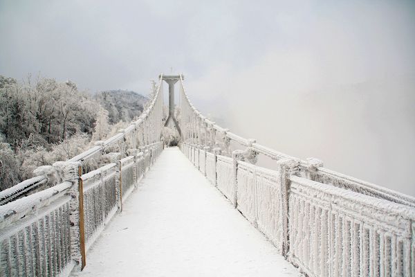 決定去天門山,一個很重要的原因就是想坐一下這個世界第一的索道——長7000多米,高1000多米,從市內(nèi)直接就到了天門山頂,既刺激又輕松。一大早到了索道站,天門洞景區(qū)由于下雪封路沒法游覽,256的票價(jià)減少到225,連最著名的景點(diǎn)都去不了,看來真是來坐長途索道了。