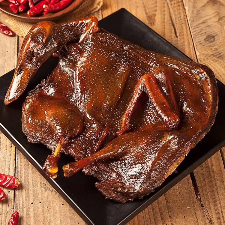 “常德醬板鴨”選用洞庭湖區(qū)蛋鴨為材料、經(jīng)三十多種名貴中藥浸泡,10余種香料、經(jīng)過風(fēng)干、烤制等15道工序精致而成,成品色澤深紅,皮肉酥香,醬香濃郁,滋味悠長,具有活血、順氣、健脾、養(yǎng)胃、美容之功效,是近期風(fēng)靡大江南北的一種風(fēng)味美食,是一道佐酒佳肴、送禮佳品。產(chǎn)品香、辣、甘、麻、咸、酥、綿適中,其中以辣稱奇,具有醇香可口,色香俱全,低脂不膩,回味無窮,食用方便的特點(diǎn)。